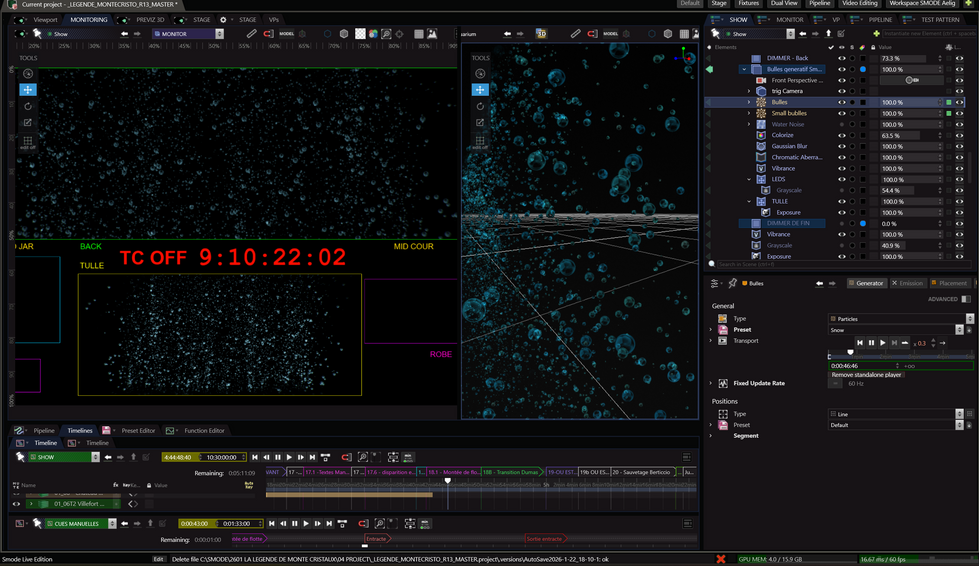 In addition I was responsible for programming the show and delivering live adjustments during performances, adapting lighting states and visual outputs in real time to align precisely with the evolving scenography and stage dynamics.